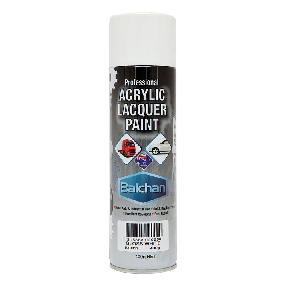 The Balchan range of acrylic spray paints are perfect to use on a range of different surfaces like metal, fibreglass and plastics. Their fast-drying air dry finish will leave a high gloss shine on your next project. Balchan acrylic paints come in a range of different colours and with their convenient 400g size allow for a wider range of coverage per can making them more economical than competitor paints.